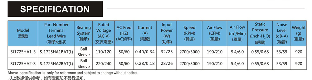 臺灣三巨SJ1725HA2方形-AC軸流風扇