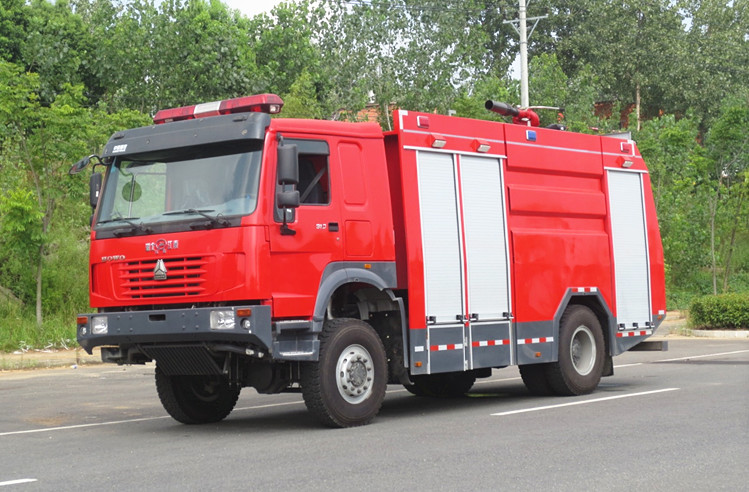 這款消防車采用重汽ZZ2187N5227E1底盤改裝而成。整車由消防員乘員室和車身兩大部分組成,乘員室為原裝單排駕駛室,可乘坐2人,該車為外露罐結(jié)構(gòu),車身前部為器材箱,中部為水罐,后部為泵房。載液罐體為優(yōu)質(zhì)碳鋼,內(nèi)部噴涂環(huán)氧底漆及環(huán)氧瀝青漆,與底盤采用彈性連接,載水4000kg(PM60)/6000kg(SG60),泡沫液量2000kg(PM60),裝備了上海雄真消防設(shè)備有限公司生產(chǎn)CB10/60-XZ型低壓消防泵,額定流量60L/S,車頂安裝成都威斯特消防機械有限公司生產(chǎn)的PL48(PM60)或PS60W(SG60)型車用消防炮。該車最大的特點是載液量大、操控性好、維修簡便?蓮V泛應(yīng)用于公安消防隊、廠礦企業(yè)及社區(qū)、碼頭等場所,撲救大型油類火災(zāi)和一般物質(zhì)火災(zāi)。
