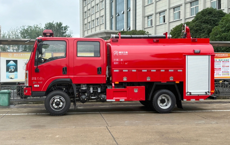 這款車型采用東風(fēng)四驅(qū)底盤、用于小范圍火災(zāi)早期撲滅。配備四驅(qū)底盤,載水≥4.5m3,車載消防泵工作揚(yáng)程≥200m,額定流量≥150m3/h。水罐消防車主要用來撲救房屋建筑及一般固體物質(zhì)火災(zāi)。在撲救石油石化火災(zāi)中主要用以冷卻裝置、保護(hù)毗鄰設(shè)施或建筑;配備中低壓消防泵,大大提升了泵的流量,水泵供水距離可達(dá)2000米。