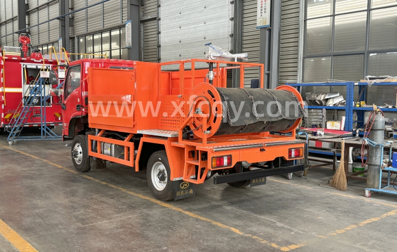 作業(yè)性能:水罐容積8噸,消防炮射程55米,支持水/泡沫混合噴射,適用于草原及山地地形。