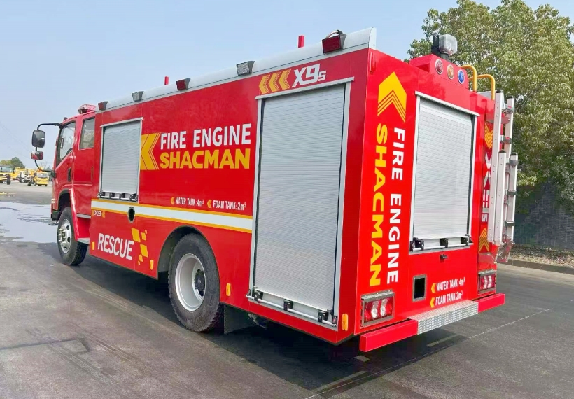 陜汽6立方泡沫消防車批量出口至上海港發(fā)往肯尼亞