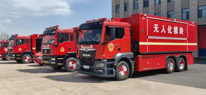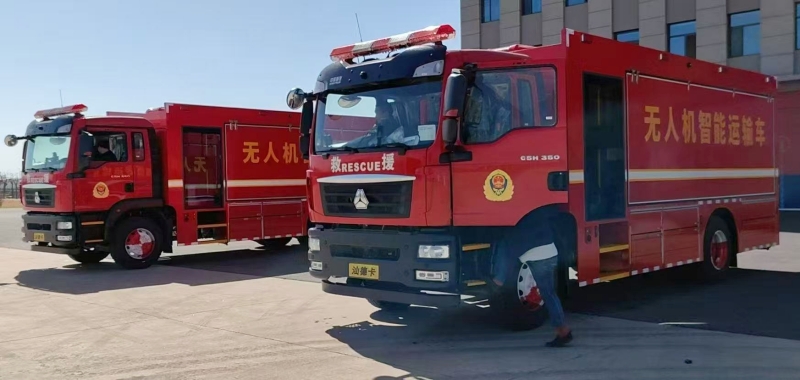 無人機與地面指揮中心實時信息聯(lián)動,配套專用消防車作為貯存和供給平臺,適用于高層建筑、化工火災等場景。