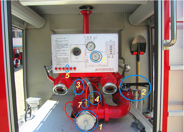 打開車輛總電源→打開儀表板電源按鈕→打開車輛取力器→打開吸水口接吸水管→打開真空泵開關(guān)(吸水口上面)→打開引水控制按鈕→打開后注水按鈕→車輛給油(真空表達(dá)到0.04MPa)→關(guān)閉引水控制→關(guān)閉真空泵開關(guān)→觀看液位表→吸水完成