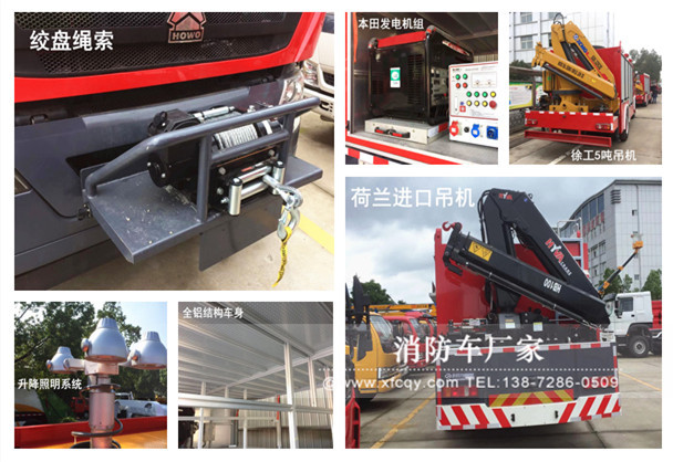 駕駛室頂部前端為長排警燈,車身后配有24V/60W火場照明燈一只,車輛兩側(cè)上方各配有紅藍相配的爆閃燈,下方安裝安全標志燈,乘員室、器材箱、 泵房內(nèi)均裝有照明燈,加裝有100W警報器,回轉(zhuǎn)警燈開關(guān)、通訊設備預備接口。